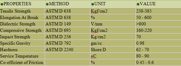 » Salient Features : Low Weight, High Impact Strength, Non Corrosive, Non Toxicity, Smooth & Slippery, Easy Machinability, Weldable, Excellent Chemical Resistance, Good Economy, Excellent Resistance To Solvent, Fuels & Lubricants.